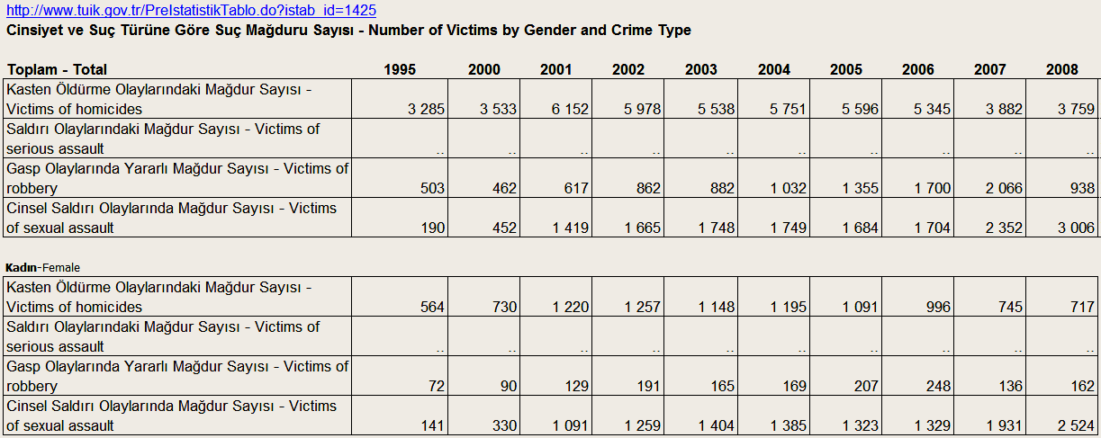 Ayrıca kadınların ve erkeklerin genel olarak zorbalığa maruz kalma verisi için tıklayın. Kadının ve erkeğin genel olarak saldırı suçları mağduru olma verisi için tıklayın (güncel veri yayınlanmıyor).